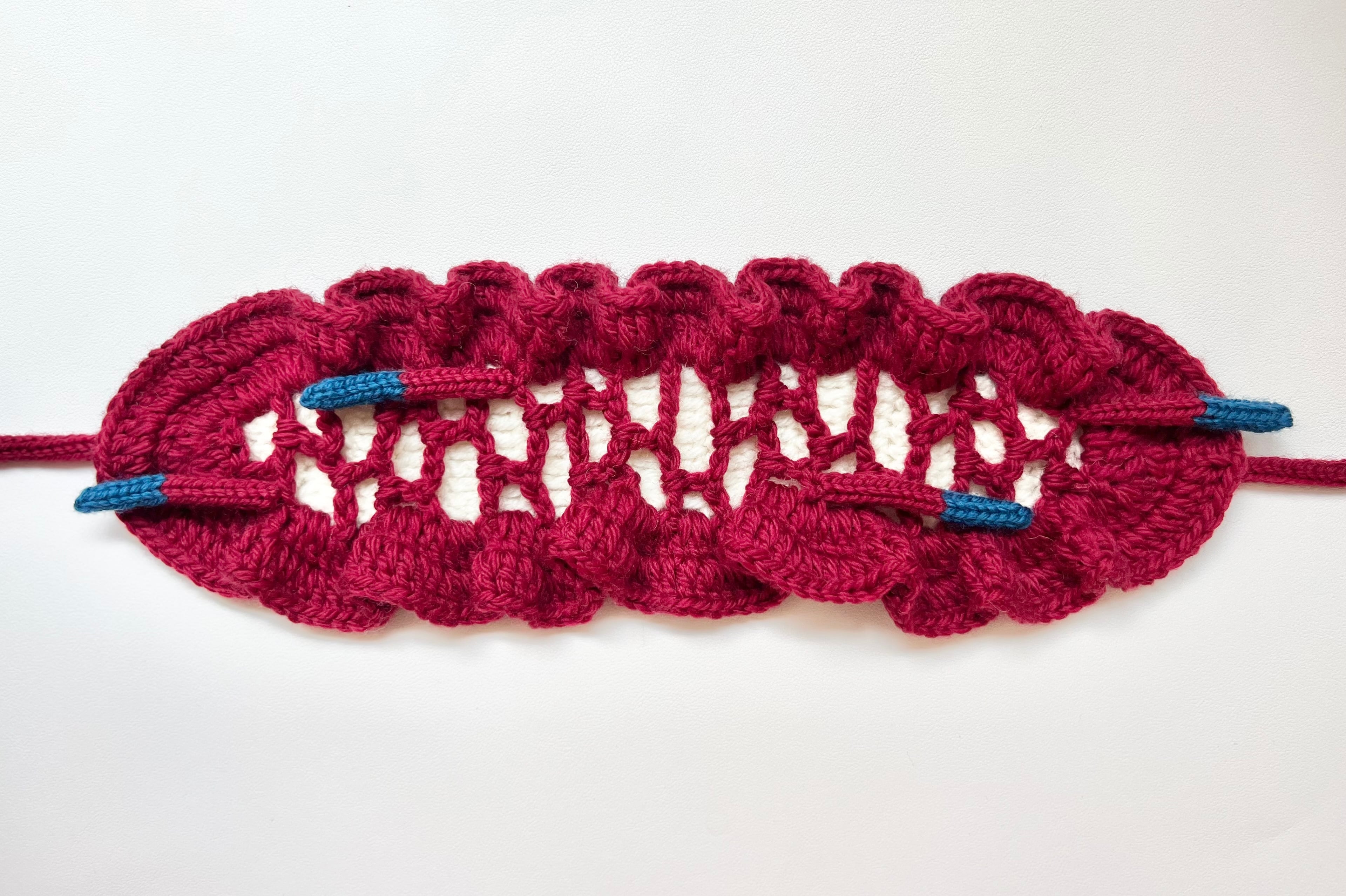 ニューロンめだまの外殻である珊瑚をイメージした網目模様と、内側から伸びる触手をイメージした紐が少し不気味な重厚感溢れる人気のヘッドドレスです。