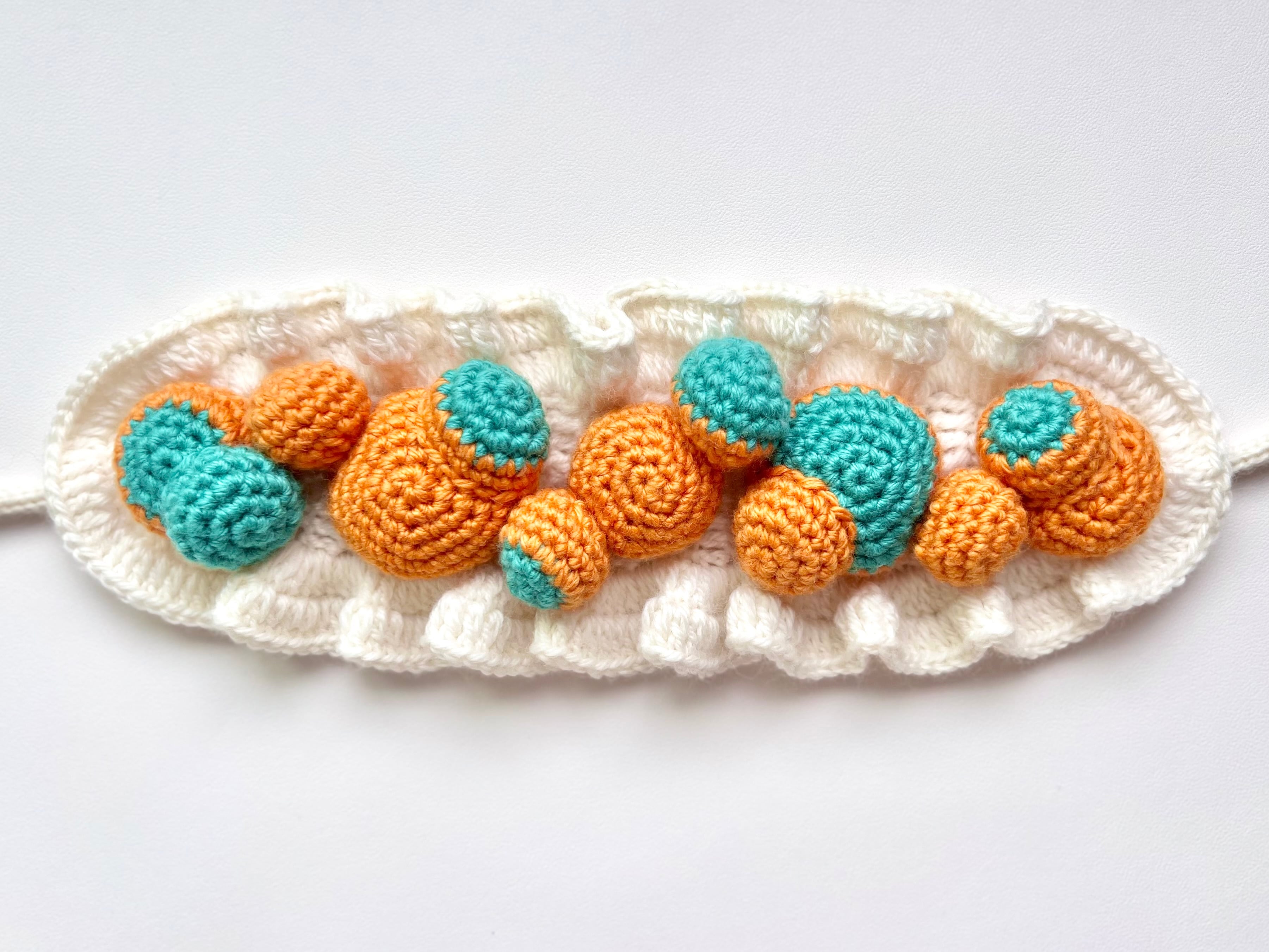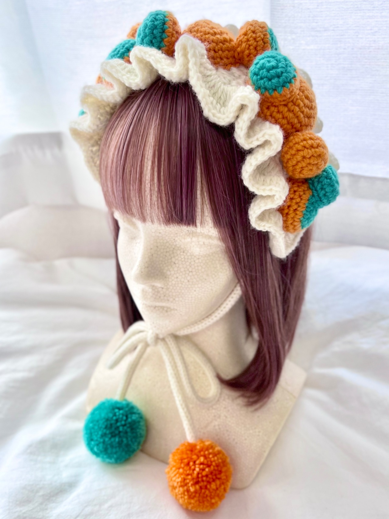 おどりキノコの細胞を大胆にあしらった、遠くから見てもインパクト抜群のヘッドドレスです。丸い細胞たちの中にはふんわりと綿を詰めているのでとても軽く、潰れる心配がないため長時間の着用も安心です⋆˙⟡